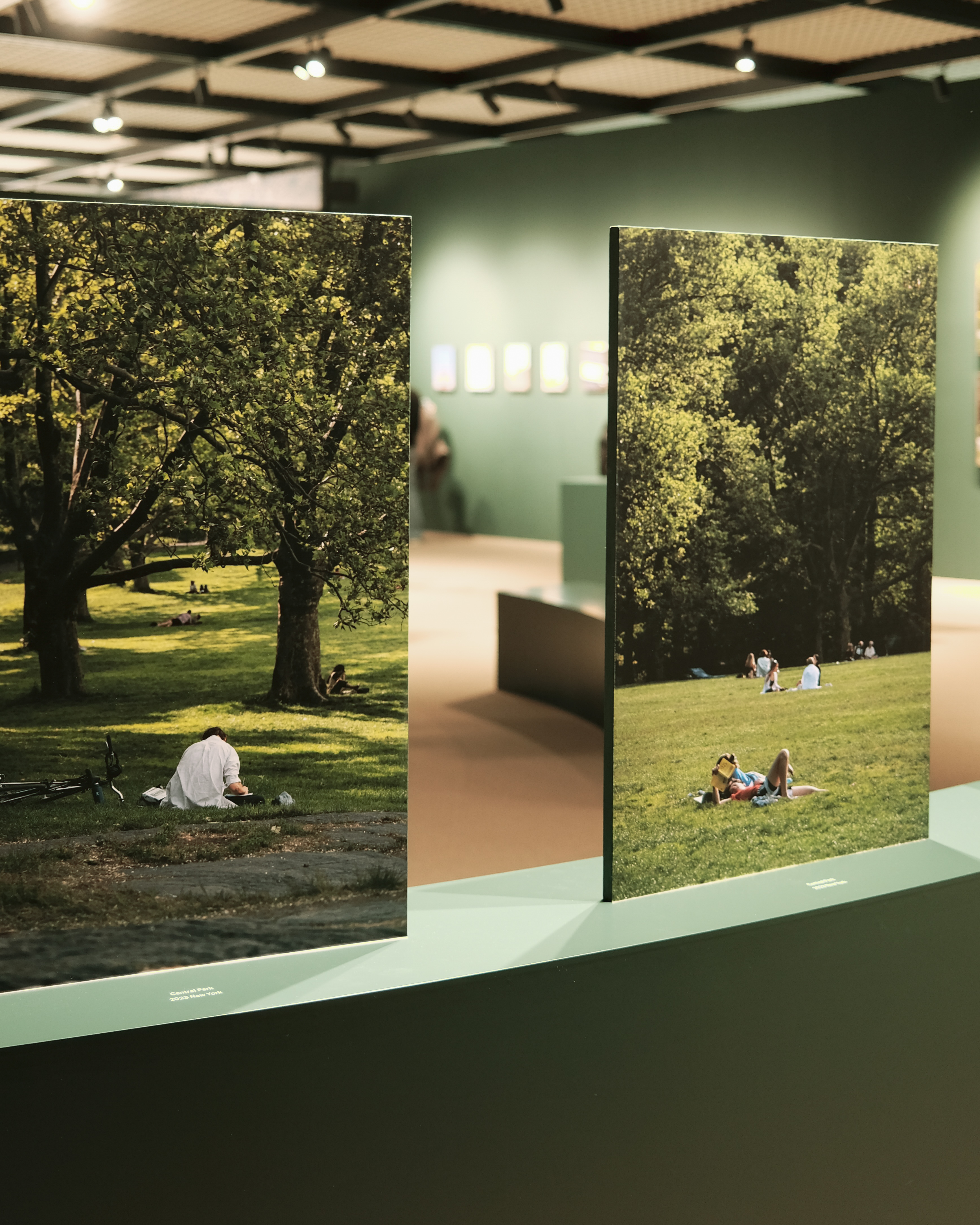 뉴욕에 거주하는 작가는 도시의 다양한 풍경과 빌딩숲, 그리고 녹색의 공원과 사람을 배경으로