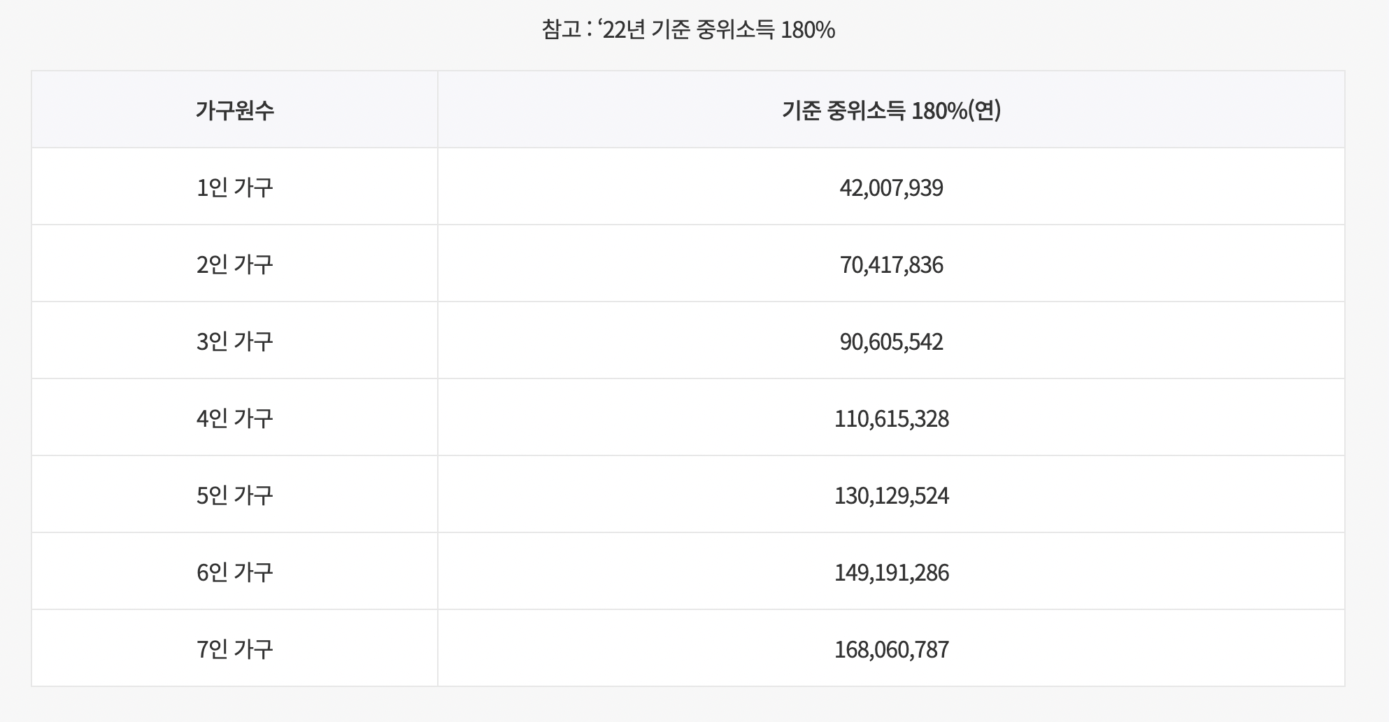 가구소득 | 미적용 | 중위소득 180% 이하 | |