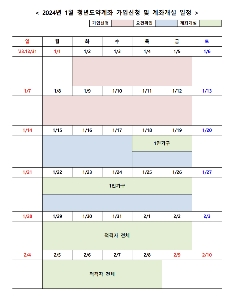 - 취급은행을 통틀어 1명당 1개의 계좌만 가입 가능