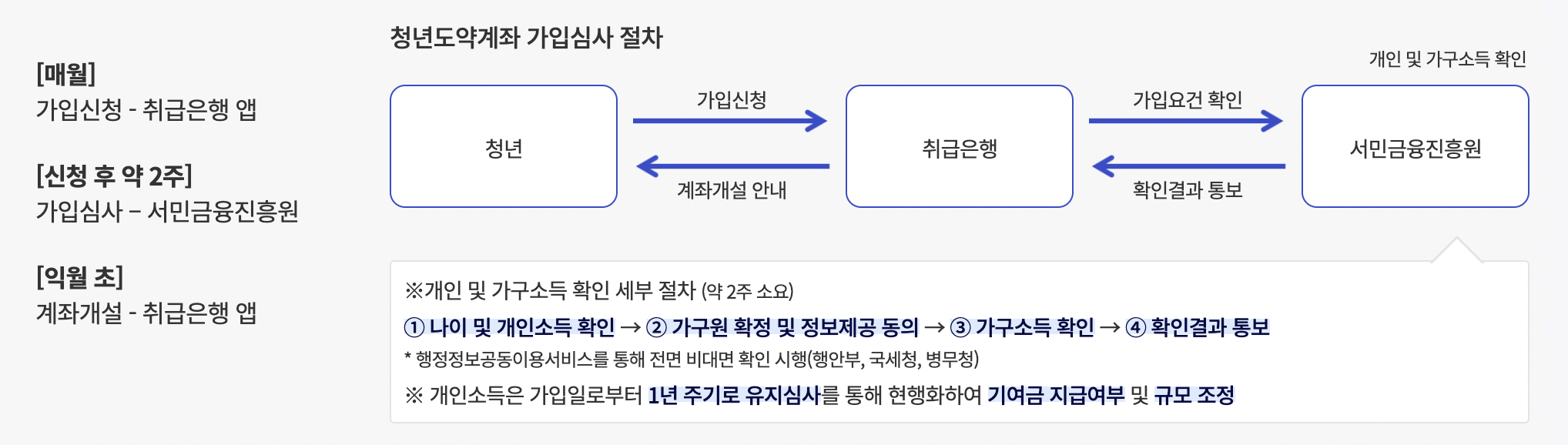 가입 대상은 만 19세부터 만 34세 청년 중, 개인소득 요건과 가구소득 요건을 모두 충족하는 자이다. 다만, 소득이 없거나 국세청에서 소득금액 증명이 불가능한 경우 가입할 수 없다. 또한 내국인 뿐만 아니라 외국인도 가입 가능하다.