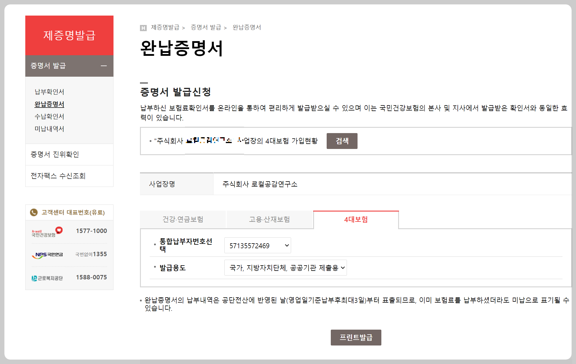 4대보험 납부확인서나 완납증명서를 발급하시고자 하신다면 사회보험통합징수포털을 이용하시면 되니다.