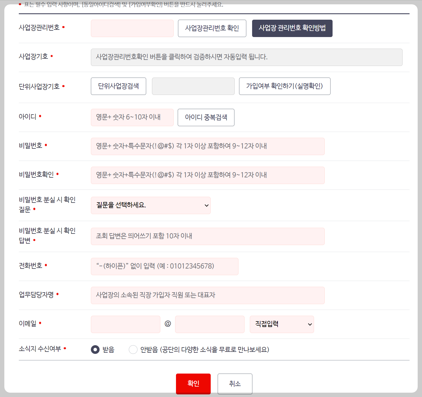 - 사업장관리번호(가입을 하셨다면 기본적으로 사업자등록번호+숫자 '0'을 누르시면 됩니다.)
