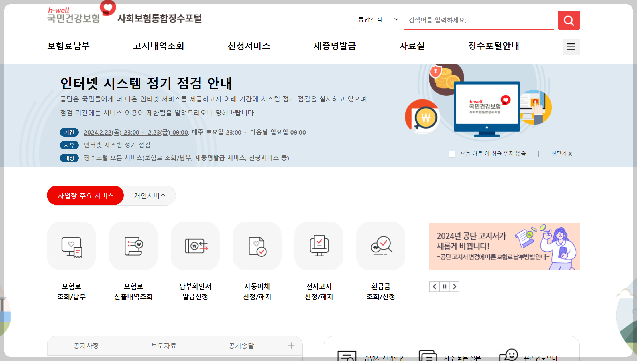 1. 건강보험공단 홈페이지('건강보험공단' 검색)
