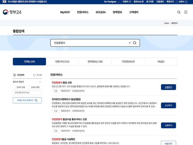 이제는 '정부 24'에서 인감증명서를 발급받을 수 있습니다.