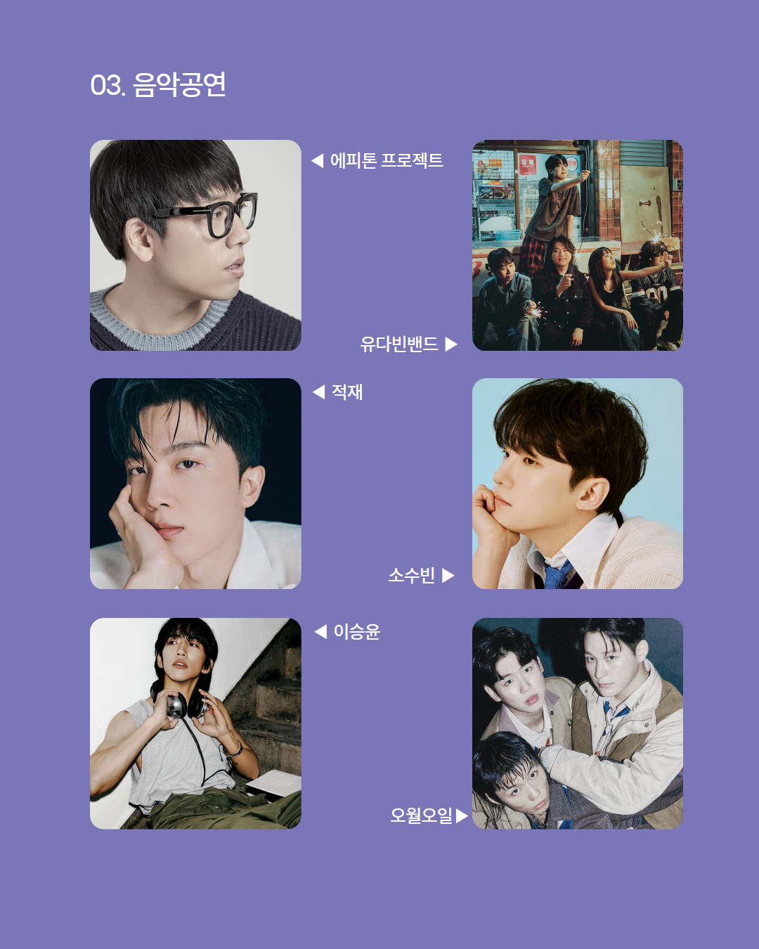다양한 뮤지션들을 만나보실 수 있습니다