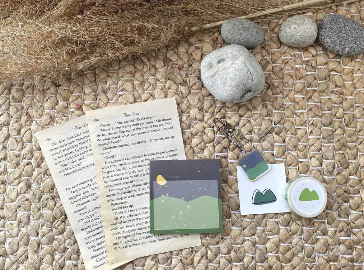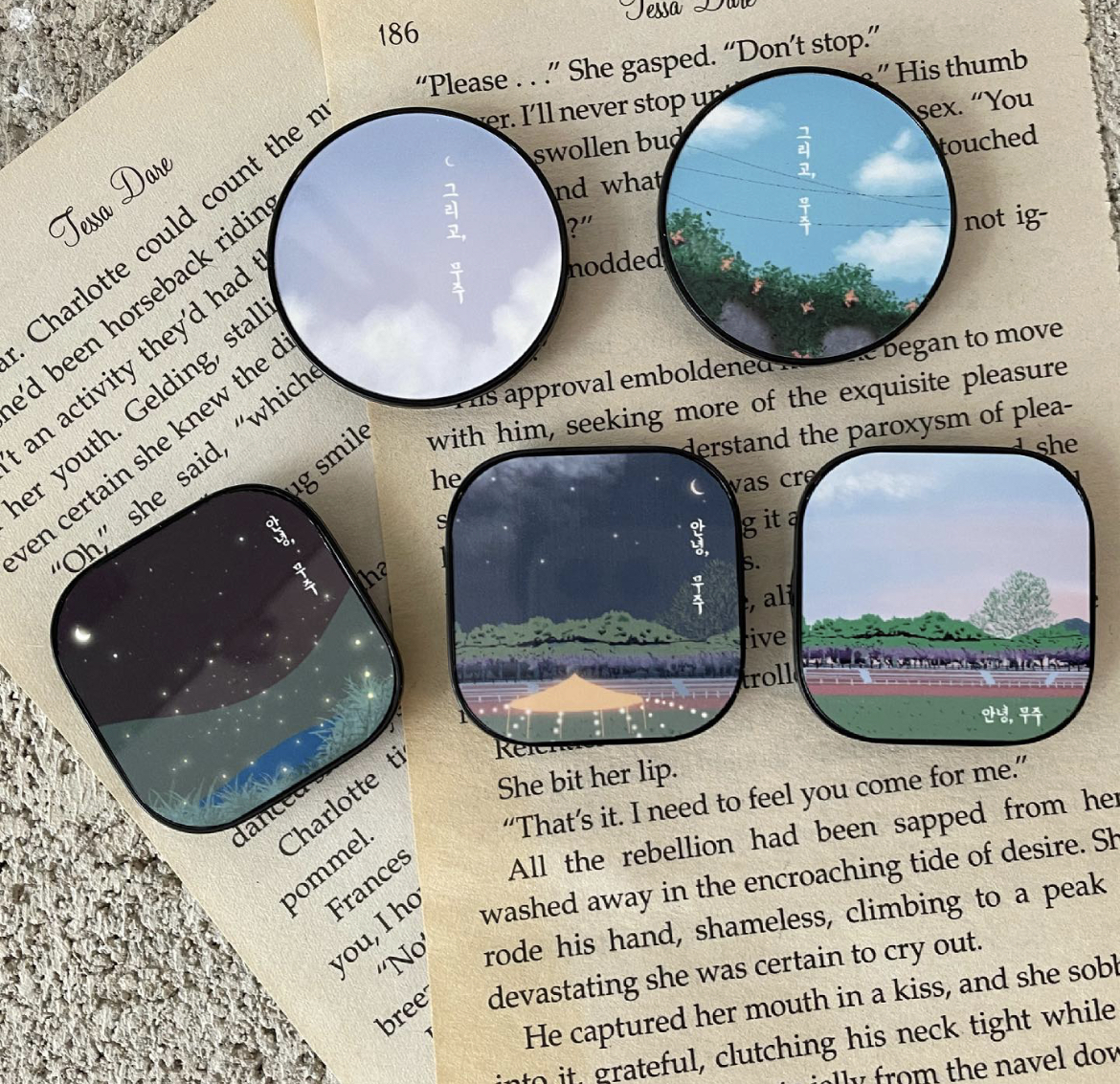 * 무주의 하늘과 무주의 곳곳을 그린 마그네틱, 키링, 틴케이스, 노트, 핀, 그립톡