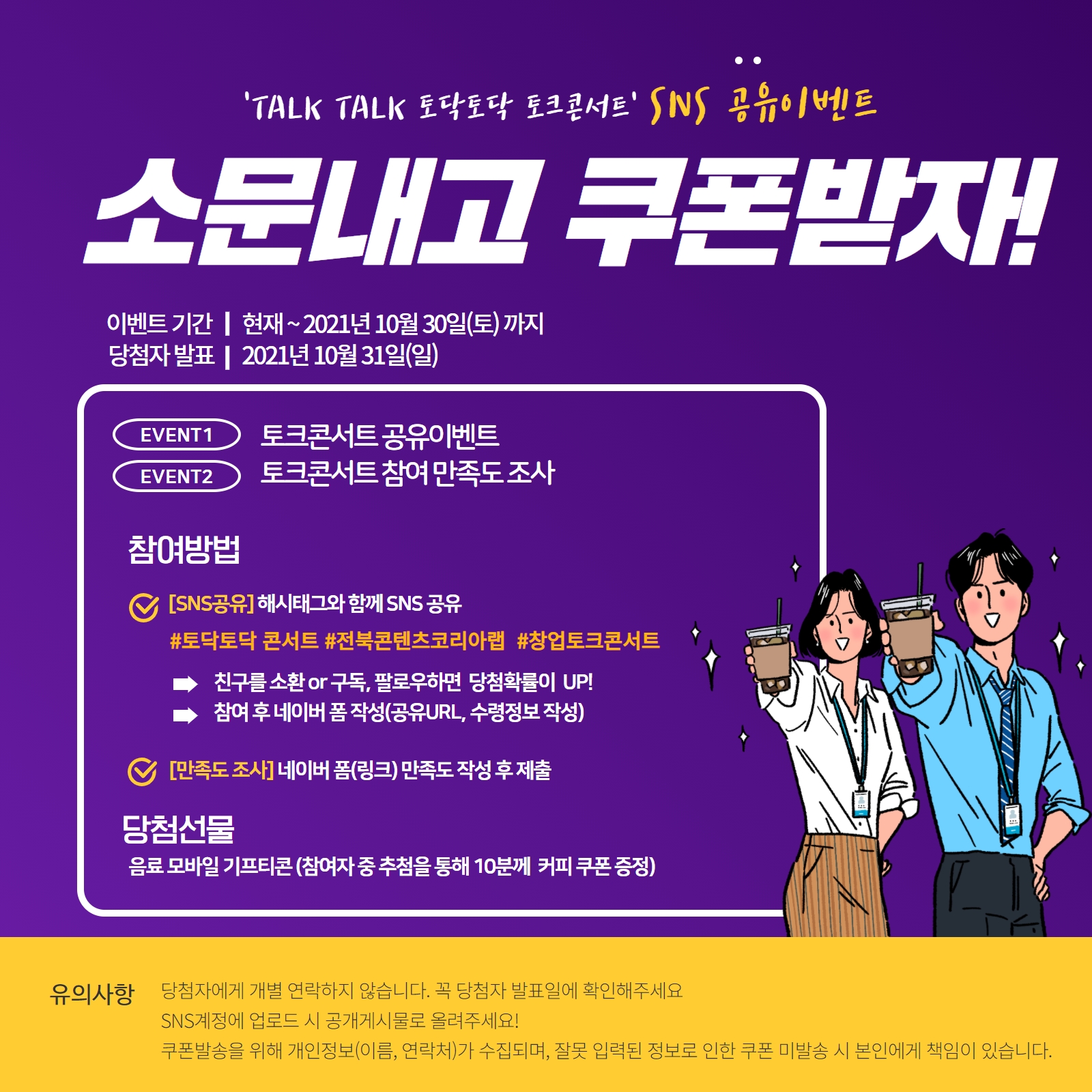 (참여자 중 추첨을 통해 이벤트 당 10분께 커피 쿠폰 증정)