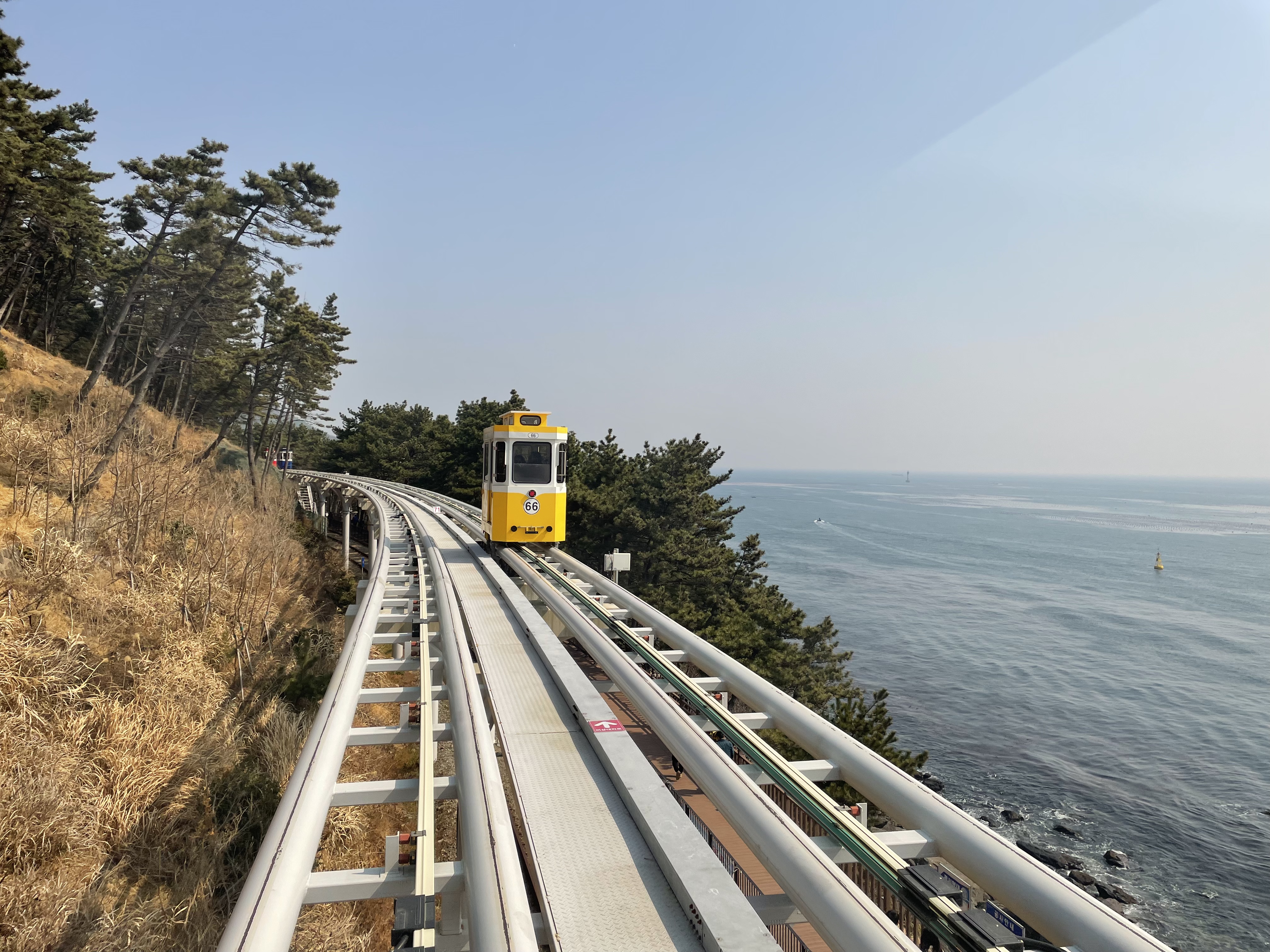 부산 캡슐열차를 탈 수 있는 정류장은 미포정거장, 청사포정거장이 있어요