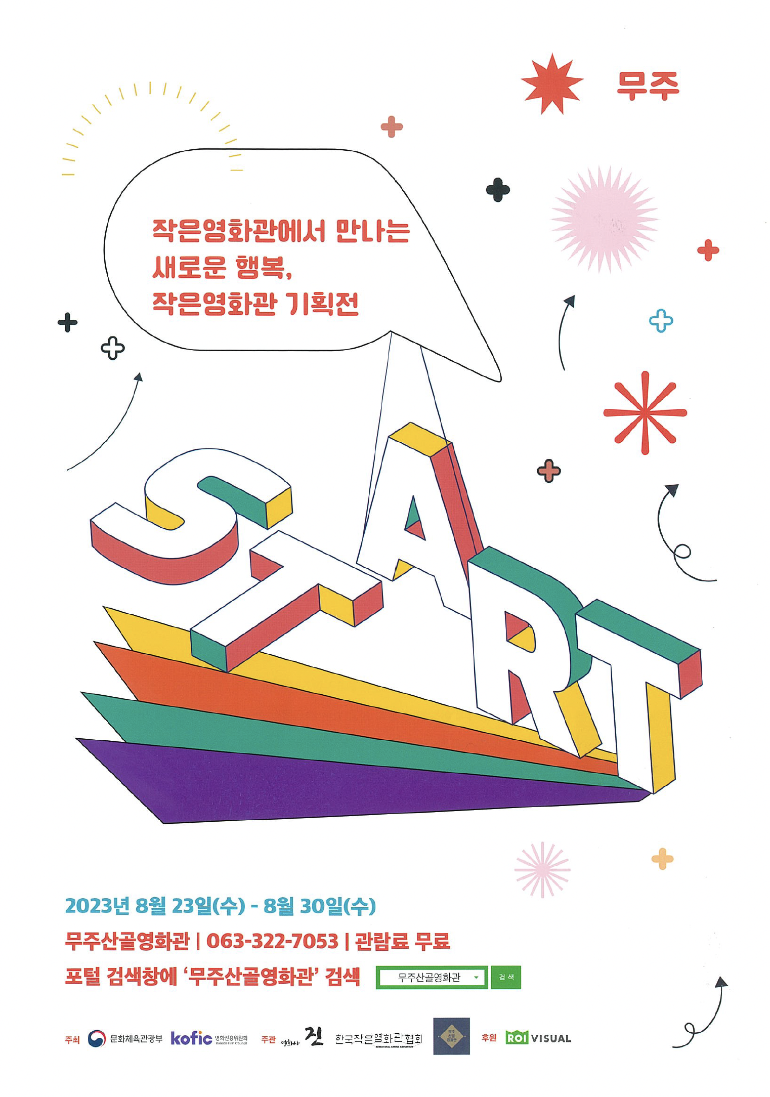 올해에도 문체부와 영화진흥위원회가 주최하는 <작은영화관 기획전>이 무주산골영화관에서 2023년 8월 23일(수)부터 8월 30일(수)까지 8일간 무료로 진행된다. 매년 4~5월 즈음에 전국의 작은영화관을 대상으로 기획전 프로그램 공모가 진행되는데, 올해에도 다행히 무주산골영화관이 선정되었다.