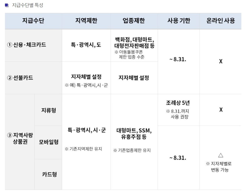 ※ 지역사랑상품권·선불카드의 경우 구체적 신청일정·방법 등은 지자체별로 일부 변동될 수 있습니다.